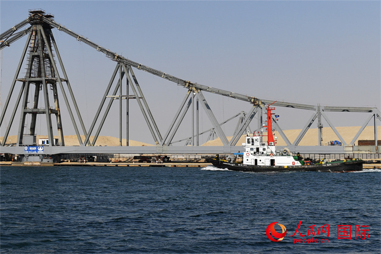 6月5日,埃及蘇伊士運河鐵路橋正在旋轉(zhuǎn)移動。人民網(wǎng)記者 李涼攝 |