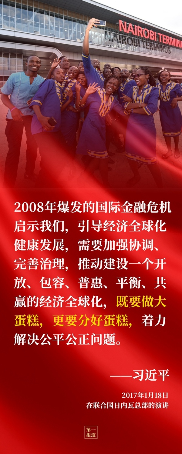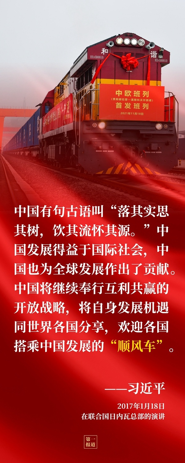 “在人類追求幸福的道路上,一個國家、一個民族都不能少?!睆嫩`行互利共贏的開放戰(zhàn)略,到推動高質量共建“一帶一路”,從深化國際減貧合作,到提出全球發(fā)展倡議,中國始終把自身命運與世界各國人民命運緊密相連,與世界共謀發(fā)展、并肩同行,向著構建人類命運共同體的光明未來不斷邁進。