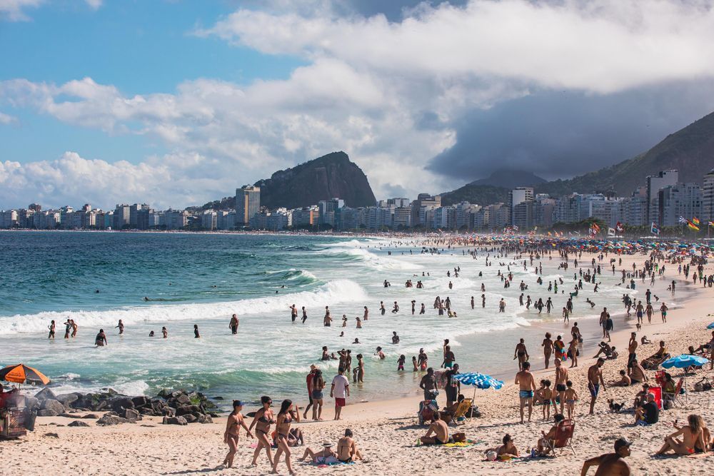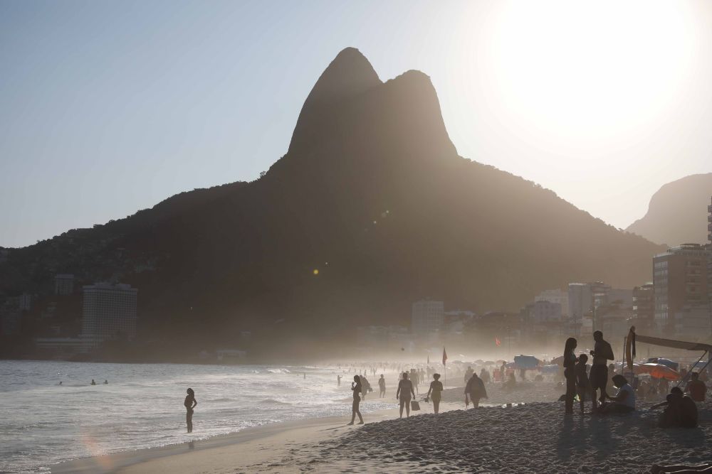 ↑巴西里約熱內(nèi)盧海邊的游人。