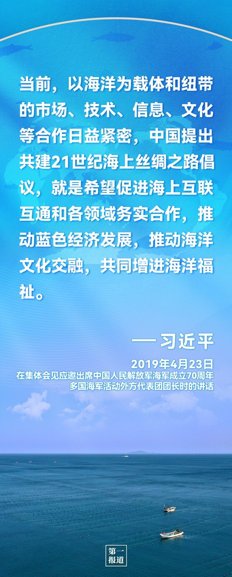 歷史上,“海上絲綢之路”是沿途各國(guó)人民通過海洋交流融通、互利合作的生動(dòng)寫照。繼往開來,習(xí)近平提出的構(gòu)建海洋命運(yùn)共同體、建設(shè)21世紀(jì)海上絲綢之路倡議,為推動(dòng)海洋可持續(xù)發(fā)展、維護(hù)國(guó)際海洋秩序、增進(jìn)海洋繁榮福祉貢獻(xiàn)了中國(guó)智慧。