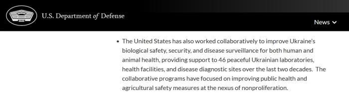根據(jù)五角大樓的說法,這46個(gè)在烏生物設(shè)施包括實(shí)驗(yàn)室、衛(wèi)生設(shè)施和疾病診斷機(jī)構(gòu)。美方還聲稱,與烏克蘭的合作是為改善烏“生物安全”以及“人類和動(dòng)物的疾病監(jiān)測(cè)”等問題。