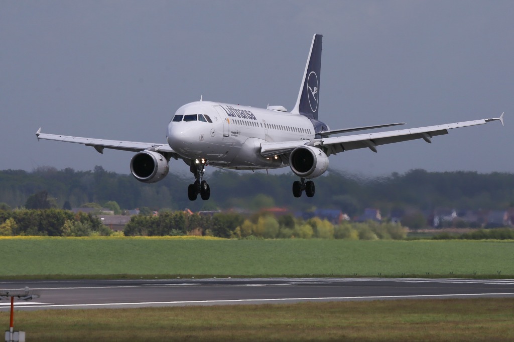 2021年5月21日,漢莎航空的一架航班準(zhǔn)備在比利時布魯塞爾機場降落。新華社記者鄭煥松攝