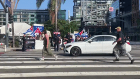 美國抗議者在美洲峰會會場外被執(zhí)法人員控制。(視頻來自網(wǎng)絡(luò))