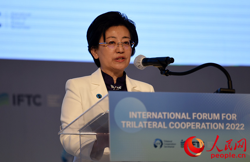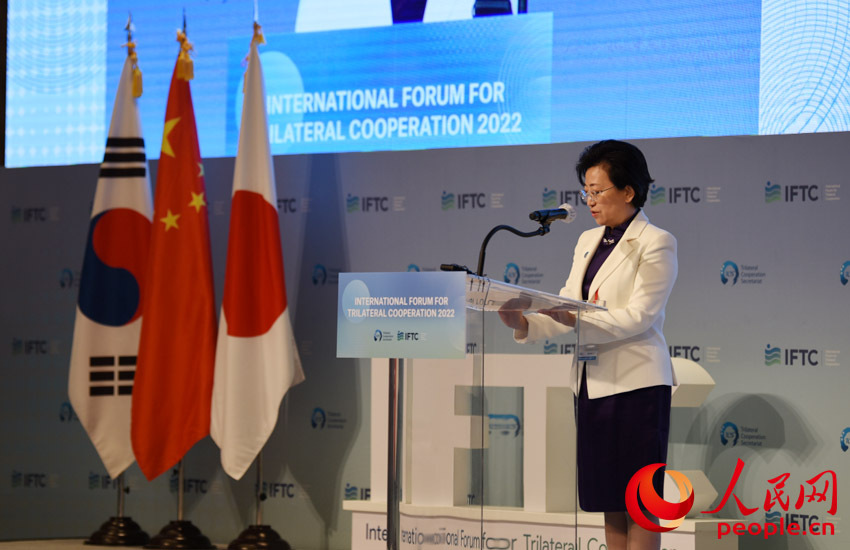 中日韓合作秘書處秘書長歐渤芊致開幕辭。人民網(wǎng) 裴俊基攝