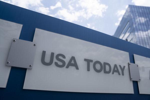 這是6月17日在美國弗吉尼亞州費(fèi)爾法克斯縣拍攝的《今日美國報(bào)》總部標(biāo)識(shí)牌。新華社記者劉杰攝