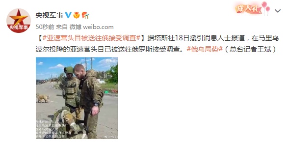 據(jù)塔斯社18日援引消息人士報(bào)道,在馬里烏波爾投降的亞速營(yíng)頭目已被送往俄羅斯接受調(diào)查。(總臺(tái)記者王斌)