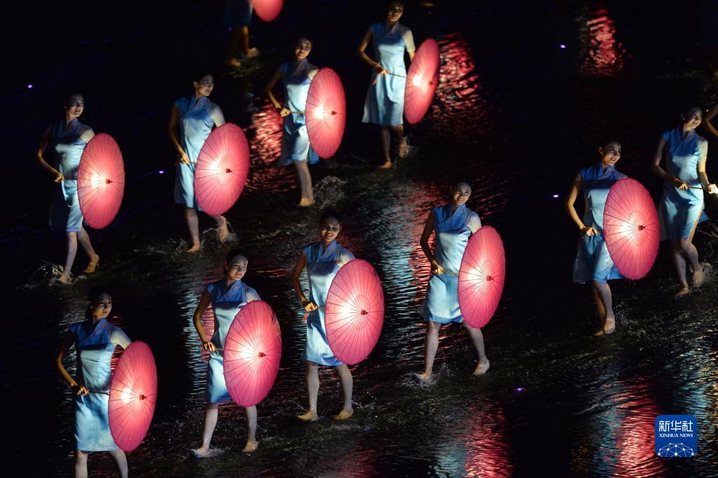 演員在西湖景區(qū)進(jìn)行的G20杭州峰會(huì)文藝演出《最憶是杭州》中表演《難忘茉莉花》(2016年9月4日攝)。新華社記者 黃宗治 攝