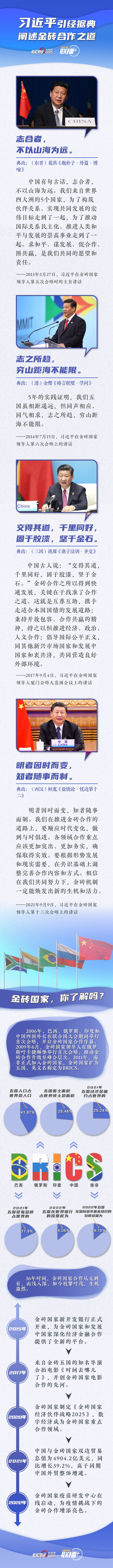 金磚合作機制成立16年來,金磚國家經(jīng)受住國際風云變幻的考驗,成為國際舞臺上一支不容忽視的重要力量。習近平主席曾在不同場合多次引用古語來闡述金磚合作之道。央視網(wǎng)《聯(lián)播+》特作梳理,與您一起學習。