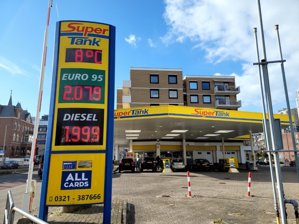 這是4月2日在荷蘭海牙市一處加油站拍攝的油價(jià)顯示牌。新華社記者王湘江攝