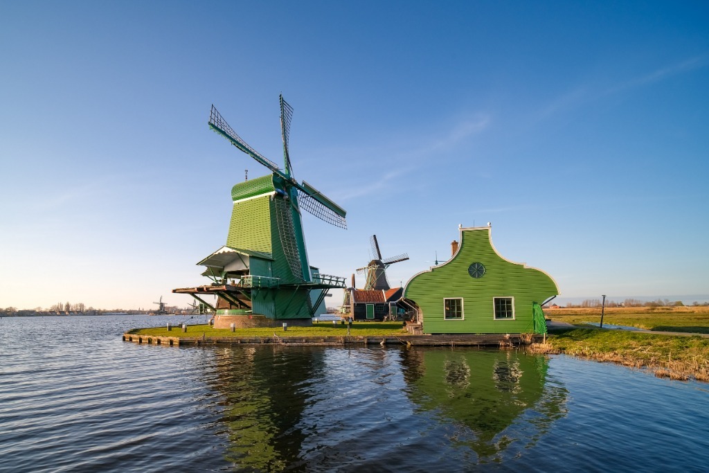 這是3月26日在荷蘭贊丹拍攝的桑斯安斯“風(fēng)車村”景色。新華社記者張鋮攝
