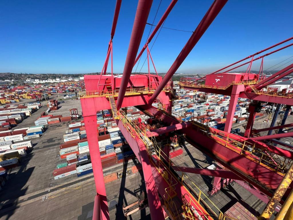 這是4月21日拍攝的南非德班港集裝箱碼頭(手機拍攝)。新華社記者田弘毅攝