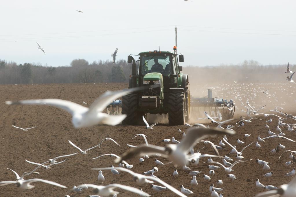2021年4月15日,農(nóng)民在俄羅斯列寧格勒州一農(nóng)場內(nèi)播種春小麥。新華社發(fā)(莫京娜攝)