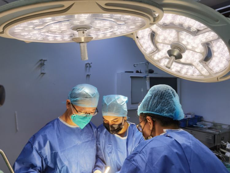人民網(wǎng)喬治敦6月23日電 (記者畢夢瀛)“馬上手術(shù),否則患者必死無疑”,當(dāng)?shù)貢r間6月23日早晨6點16分,54歲的圭亞那男性患者拉姆賈坦進(jìn)入喬治敦醫(yī)院急診室時白細(xì)胞指標(biāo)奇高,血壓急劇下降,接到當(dāng)班醫(yī)生所羅門·桑迪求助,中國醫(yī)療隊隊長段云飛進(jìn)一步診斷后決定手術(shù)搶救。