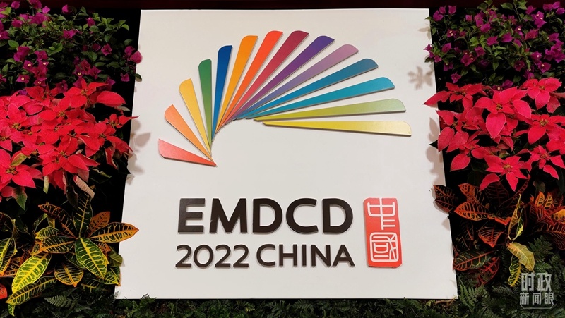 △今年的對(duì)話會(huì),沿用了五年前對(duì)話會(huì)的會(huì)標(biāo)主圖案。(總臺(tái)央視記者黃京輝拍攝)