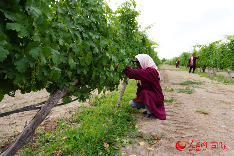 生態(tài)移民參與的葡萄采摘。人民網(wǎng)記者 何蒨攝 |