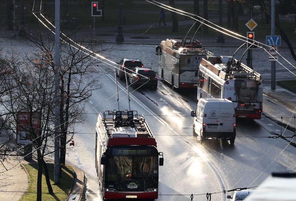 2021年10月16日,電車在立陶宛維爾紐斯街上行駛。新華社記者薛東梅攝