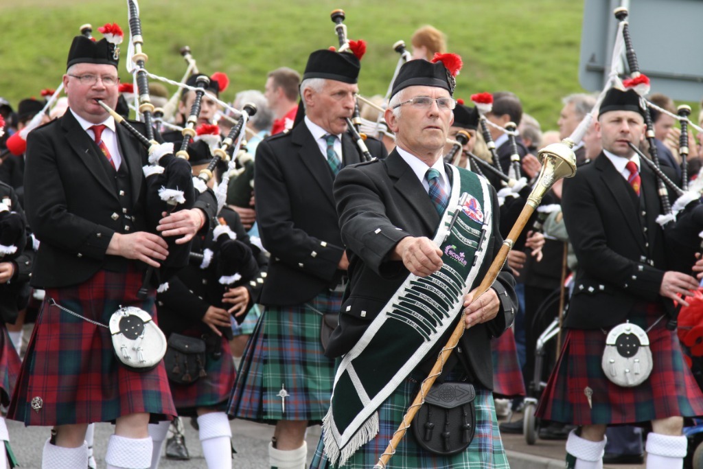 2014年6月28日,在英國(guó)蘇格蘭斯特靈,蘇格蘭風(fēng)笛手方隊(duì)在“武裝部隊(duì)日”慶祝活動(dòng)中行進(jìn)。新華社記者郭春菊攝