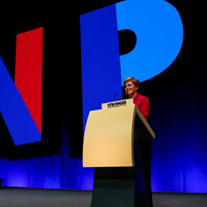 2019年10月15日,在英國(guó)蘇格蘭北部城市阿伯丁,蘇格蘭政府首席大臣、蘇格蘭民族黨黨魁妮古拉·斯特金在蘇格蘭民族黨年會(huì)上發(fā)表演講。新華社記者韓巖攝