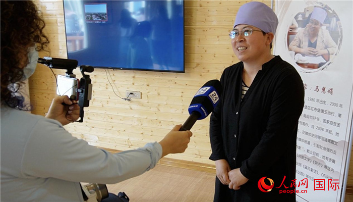 馬慧娟接受外國(guó)記者的采訪。人民網(wǎng)記者 何蒨攝