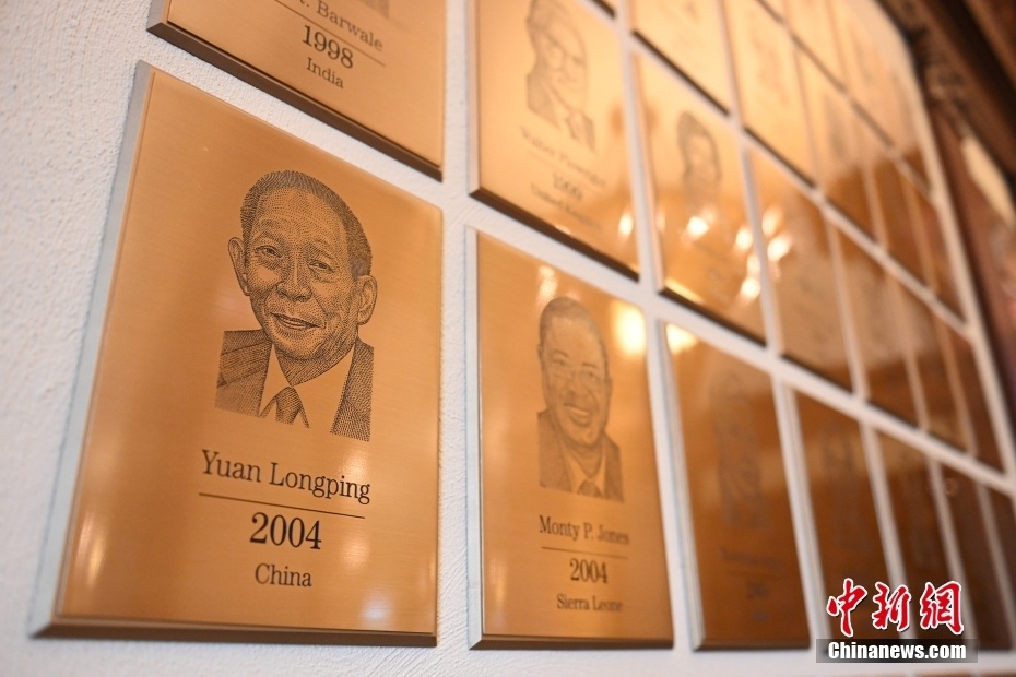資料圖為美國(guó)得梅因,世界糧食獎(jiǎng)基金會(huì)總部大樓內(nèi)的獲獎(jiǎng)?wù)呷宋飰Α? 中新社記者 陳孟統(tǒng) 攝