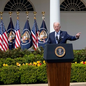 4月11日,美國(guó)總統(tǒng)拜登在華盛頓白宮發(fā)表講話。新華社記者劉杰攝