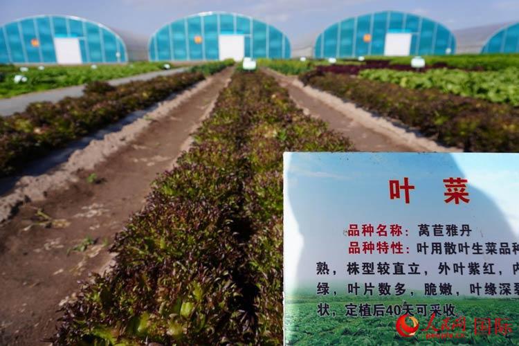 姚磨現(xiàn)代農(nóng)業(yè)示范基地正在實(shí)驗(yàn)種植的萵苣雅丹葉菜。人民網(wǎng)記者 何蒨攝 |