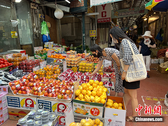 圖為當(dāng)?shù)貢r間7月5日,市民在首爾一家菜市場選購水果。 中新社記者 劉旭 攝
