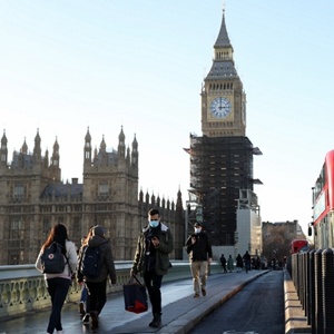 1月13日,人們走在英國(guó)倫敦的威斯敏斯特橋上。新華社記者李穎攝