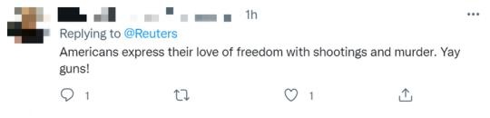海外社交媒體上,網(wǎng)友們更是群情激奮,沸反盈天,痛批槍支暴力是美國無法擺脫的頑疾,大呼“美國就是一部恐怖電影”。