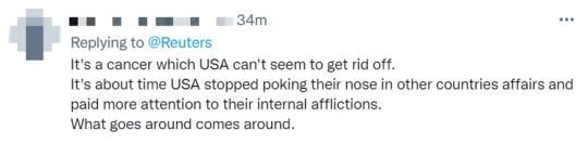 這是美國無法擺脫的頑疾。美國是時候停止干涉其他國家的內(nèi)務(wù),并將更多注意力放在本國的麻煩事上。這就是因果報應(yīng)。