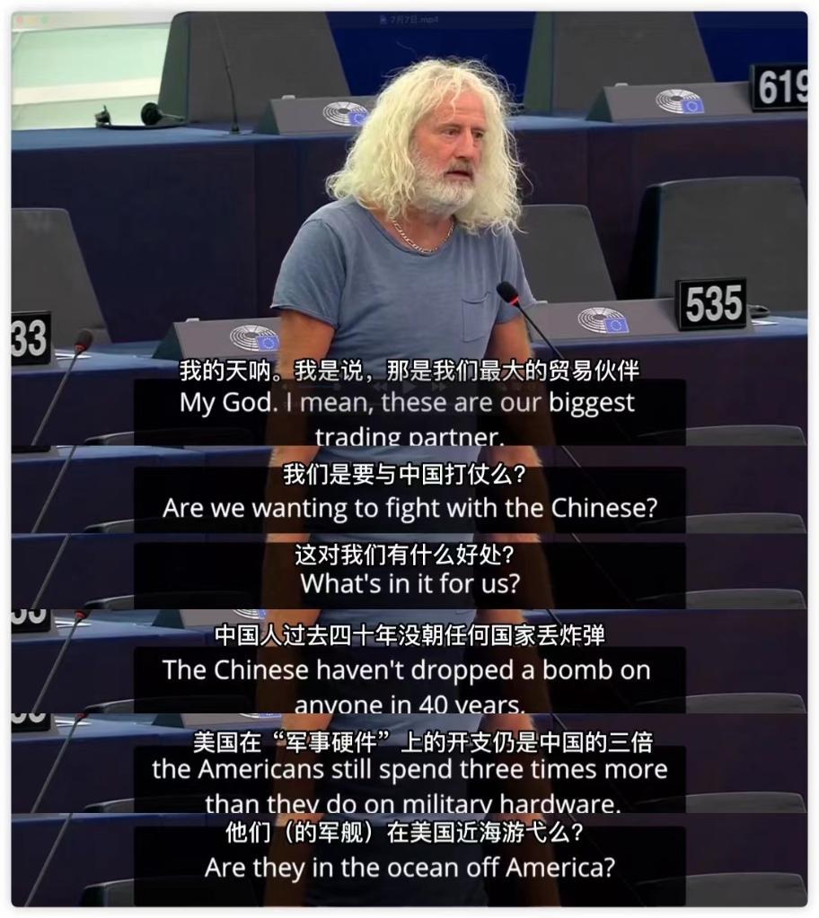 華萊士向歐洲議員們發(fā)出靈魂拷問,“我們是要與中國打仗么?這對我們有什么好處?”他萬般無奈地自嘲說:“我們有毛病吧?”