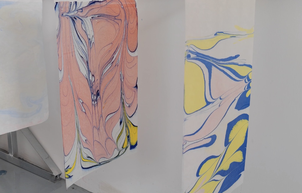 流沙箋,是用墨在水面繪出圖案,并轉(zhuǎn)印到宣紙上。晾干后,就能收獲一張極具藝術(shù)美感的作品。