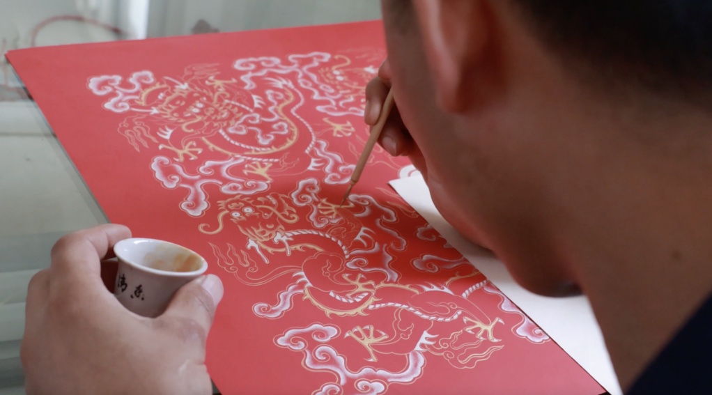 在師父的指導(dǎo)下,山姆學(xué)習(xí)了手繪描金粉蠟箋、流沙箋兩項技藝。