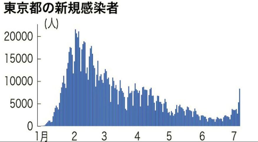 7月6日,東京都新增確診病例8341例,單日新增與上周三相比增加了4538例,自4月14日以來(lái)時(shí)隔大約三個(gè)月再次超過(guò)8000例,已連續(xù)19天超過(guò)前一周同期。截至7月6日,東京都最近一周的日均新增確診病例數(shù)為4426.6例,是前一周的186.8%。