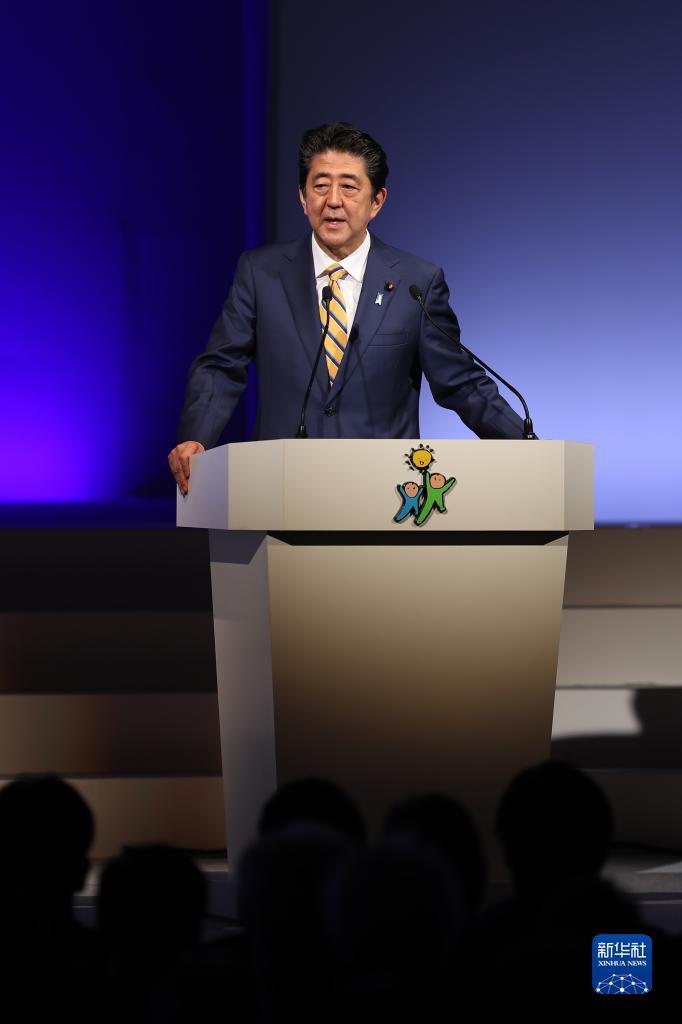 這是2019年2月10日,時(shí)任日本首相、自民黨總裁安倍晉三在東京參加自民黨大會(huì)的資料照片。新華社記者 杜瀟逸 攝