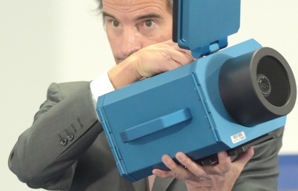 2021年12月17日,國際原子能機構(gòu)總干事格羅西在奧地利維也納舉行的新聞發(fā)布會上介紹即將在伊朗使用的監(jiān)控攝像設(shè)備。新華社記者郭晨攝