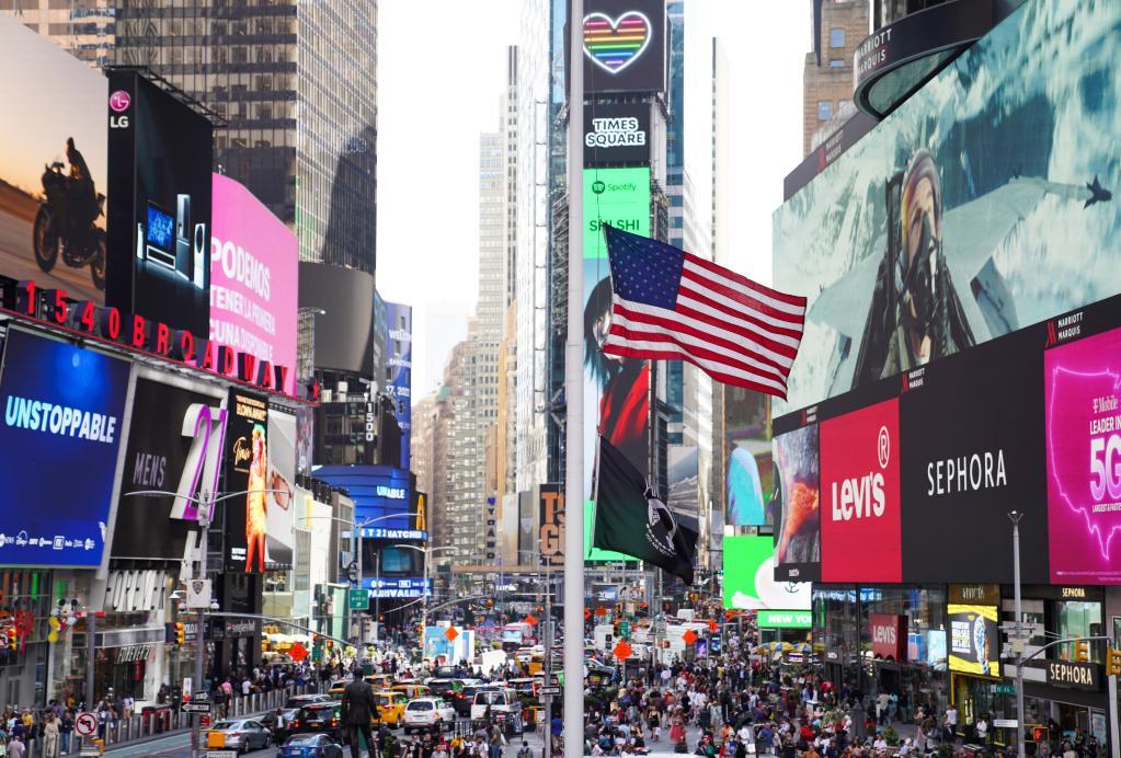 這是5月17日拍攝的美國紐約時報廣場。新華社記者王迎攝