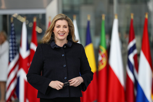 2019年6月26日,在位于比利時(shí)布魯塞爾的北約總部,時(shí)任英國國防大臣彭妮·莫當(dāng)特準(zhǔn)備出席北約國防部長會議。新華社記者張鋮攝