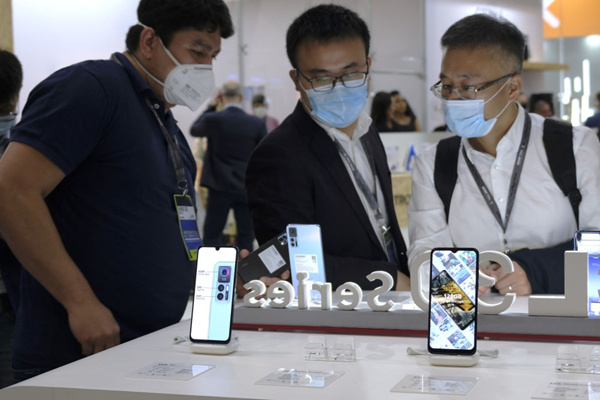 ↑7月11日,人們在巴西圣保羅消費電子展上體驗TCL公司手機產品。新華社記者 陳昊佺 攝