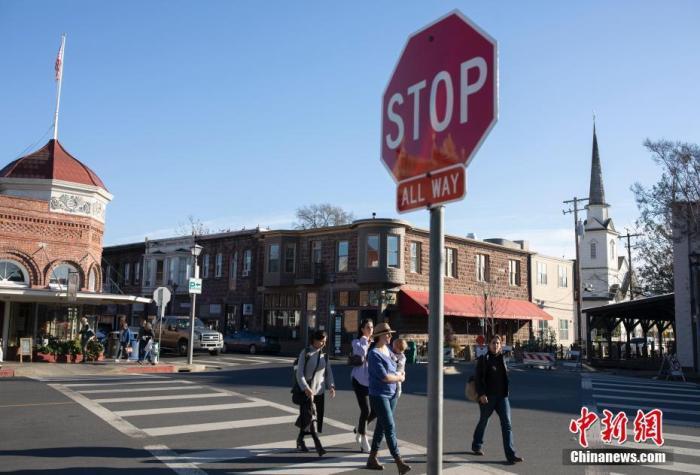 資料圖:市民從美國(guó)加州索諾馬縣索諾馬市街頭經(jīng)過(guò)。 中新社記者 劉關(guān)關(guān) 攝