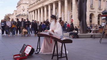 彭靜旋說,初次在法國街頭彈奏古箏時“還比較忐忑”,大多選擇《高山流水》《漁舟唱晚》等傳統(tǒng)曲目,但隨著漸入佳境,她的嘗試越來越多元,用“中國風(fēng)”形式演繹了很多西方作品。“當(dāng)?shù)赜^眾反應(yīng)都很積極,對我是很大的鼓勵。”她說。