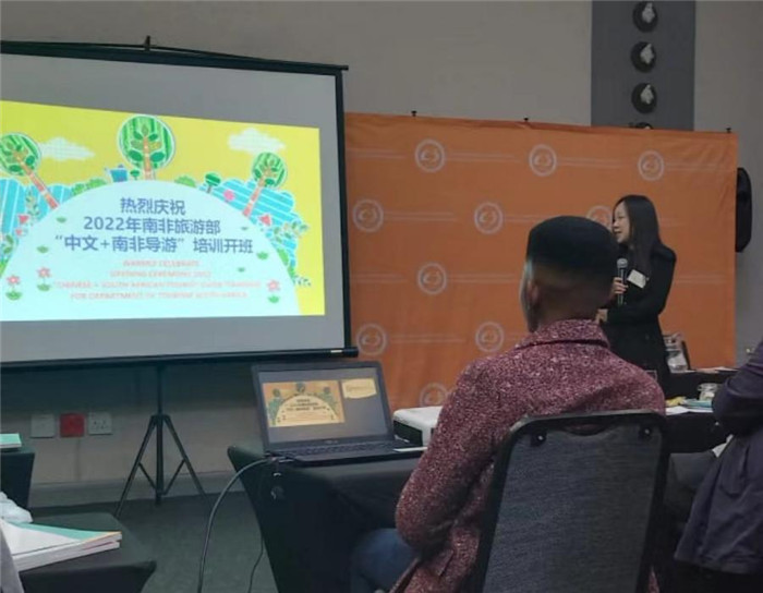 人民網(wǎng)約翰內斯堡7月14日電 (劉暢) 日前,由南非中國文化和國際教育交流中心孔子課堂承接的2022年南非旅游部“中文+南非導游”培訓開班儀式在南非豪登省阿哈科帕農(nóng)會議中心及酒店舉行,此次培訓采用線上、線下授課和戶外實踐活動相結合模式,共有34名南非旅游業(yè)從業(yè)人員參加。