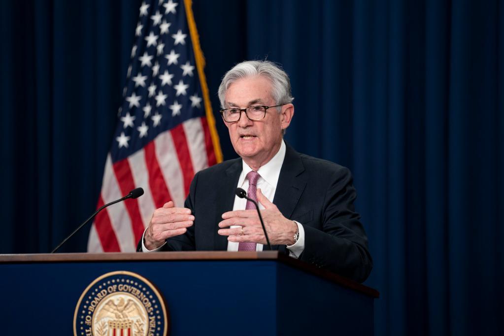 5月4日,在美國(guó)首都華盛頓,鮑威爾出席新聞發(fā)布會(huì)。新華社記者劉杰攝