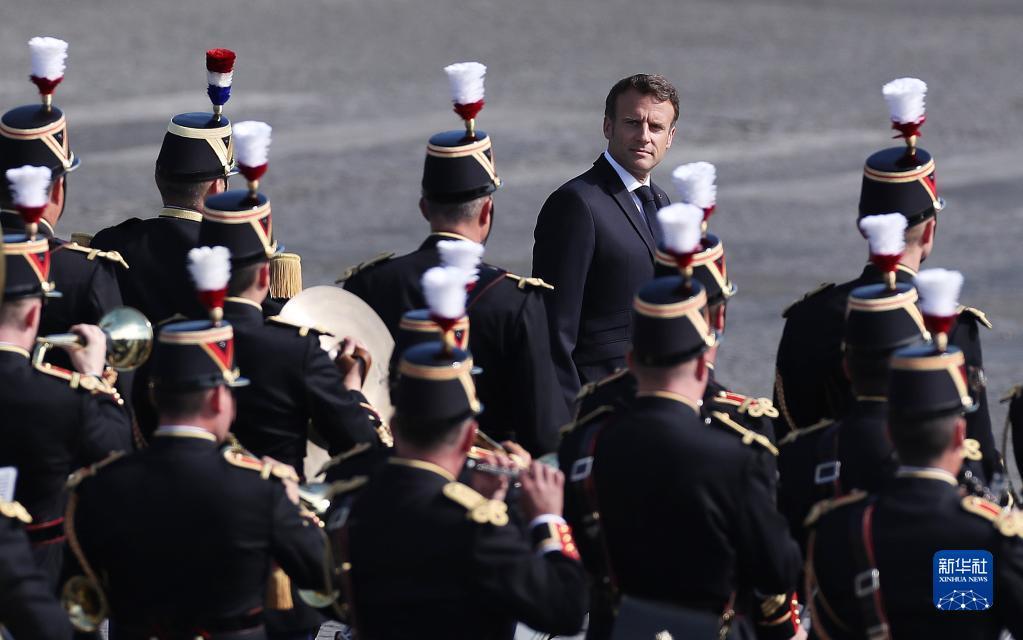 7月14日,法國總統(tǒng)馬克龍在巴黎協(xié)和廣場國慶閱兵式現(xiàn)場檢閱隊伍。新華社記者 高靜 攝