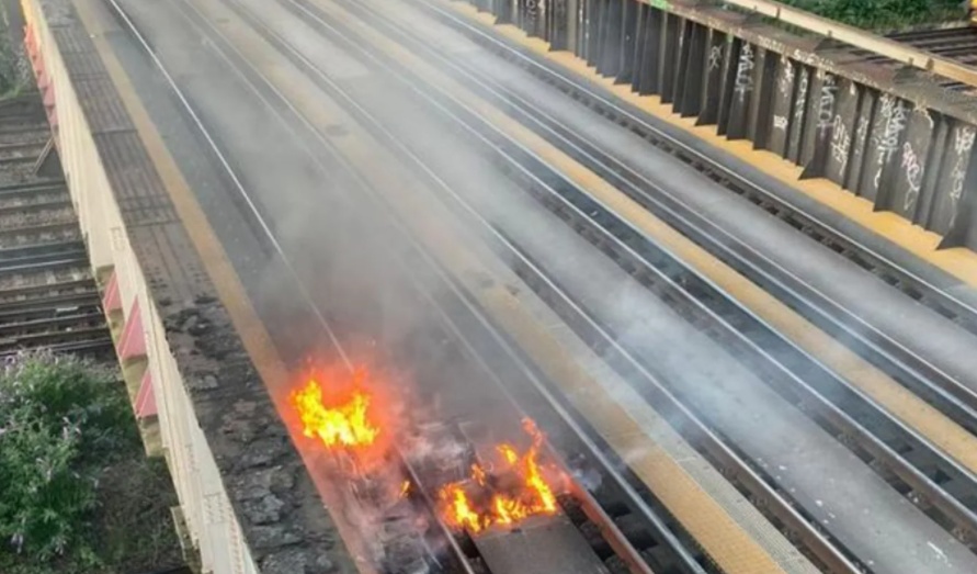 日前,由于天氣炎熱,英國(guó)南部地區(qū)一條鐵道上發(fā)生火災(zāi)。據(jù)介紹,這是由于高溫下鐵軌之間的枕木十分干燥,遇到火花燃燒所致。