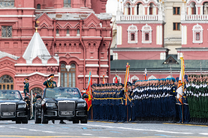 5月9日,在俄羅斯首都莫斯科,俄羅斯國(guó)防部長(zhǎng)紹伊古檢閱部隊(duì)。俄羅斯9日在莫斯科紅場(chǎng)舉行閱兵式,紀(jì)念衛(wèi)國(guó)戰(zhàn)爭(zhēng)勝利77周年。新華社記者白雪騏攝