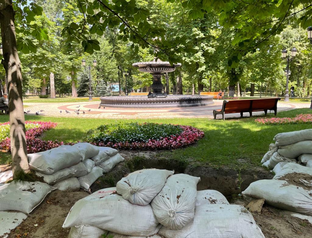 這是6月20日在烏克蘭基輔的馬林斯基公園拍攝的散兵坑。新華社記者李東旭攝