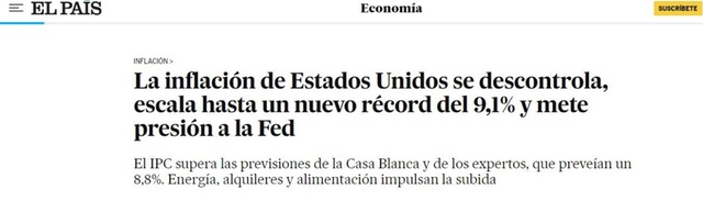 西班牙《國(guó)家報(bào)》7月13日發(fā)布題為《美國(guó)通脹失控 創(chuàng)9.1%新紀(jì)錄 美聯(lián)儲(chǔ)承壓》的報(bào)道,指出6月美國(guó)CPI同比漲幅超過了專家此前預(yù)測(cè),并且價(jià)格上漲的領(lǐng)域是廣泛的。