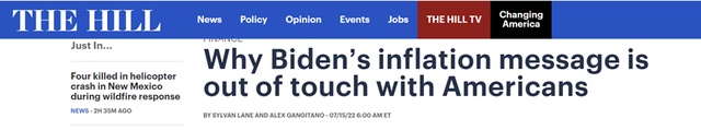 美國(guó)《國(guó)會(huì)山報(bào)》網(wǎng)站15日刊登題為《為何拜登政府的通脹信息與美國(guó)民眾脫節(jié)》的文章,批評(píng)拜登政府刻意淡化最新通脹數(shù)據(jù)的重要性。