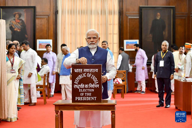7月18日,印度總理莫迪在新德里參加總統(tǒng)選舉投票。(新華社/印聯(lián)社)